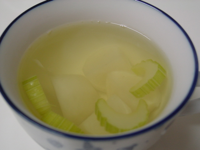 野菜くずを煮込んで作ったスープには蕪とセロリを入れています。