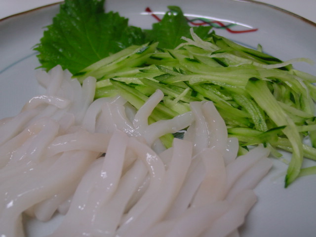 スルメイカのお造りと塩辛。今日のイカは、腸が痩せてて少なめでしたが、代わりに白子がありました(^^)v