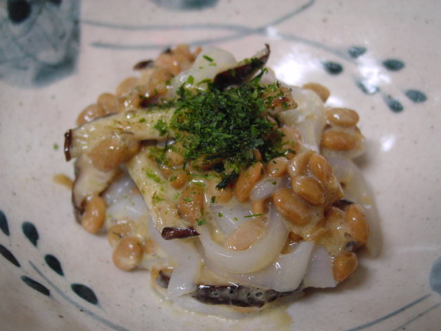 やりいかと納豆にほんの少し炙った椎茸。上に乗せた青海苔が思いのほか際立ちました。