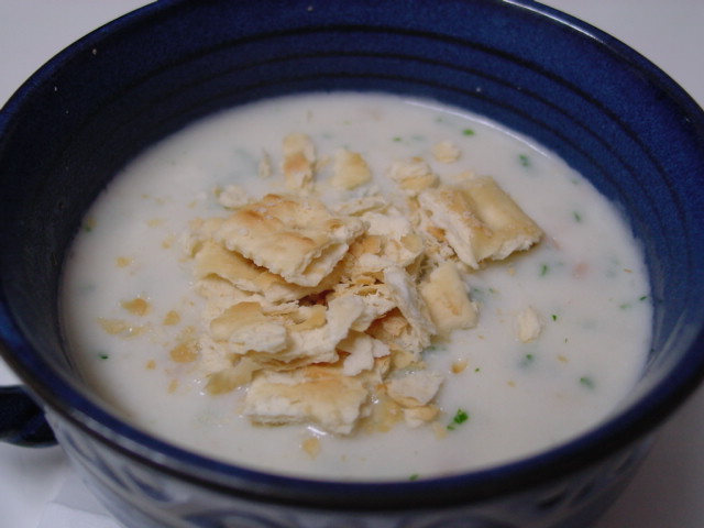 キャンベルのクラム・チャウダー。これは牛乳で延ばして温めるだけ。