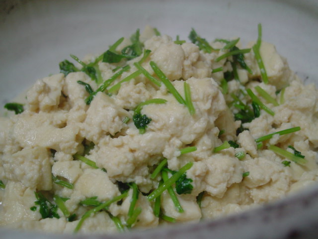 お豆腐とコリアンダーの炒め煮。
