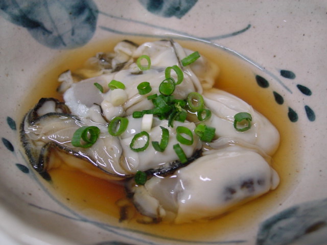 暫く見かけなかった生食用の牡蠣があったので、柚子酢の酢牡蠣に。