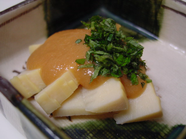 柔らかい部分はぬた和えに、固い部分は若竹汁にしました。
