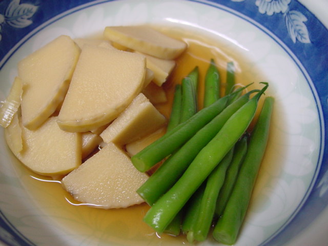 先日茹でた筍を少し残していたので、いんげんを合わせて煮物に。