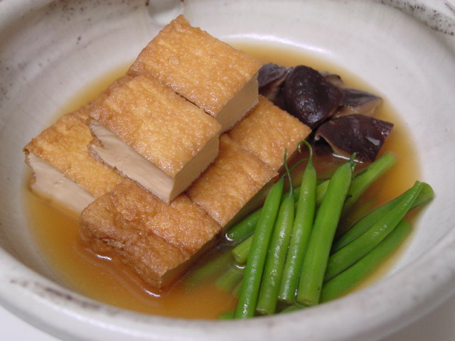 少し味付けが濃くなってしまった、揚げ豆腐といんげんと椎茸の煮物。