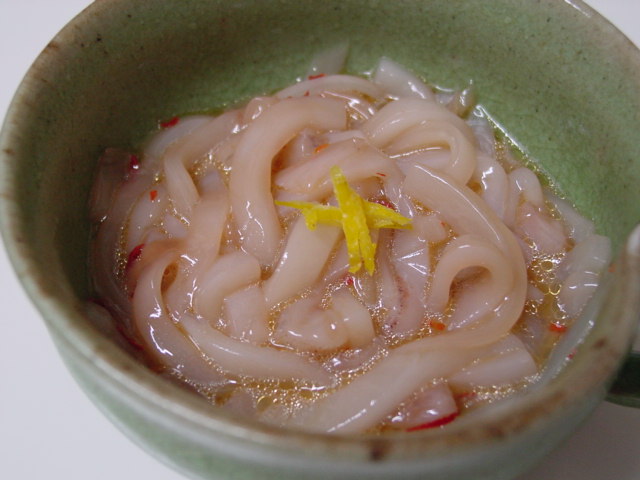 昨日買ってあった紋甲いかの足のボイル。