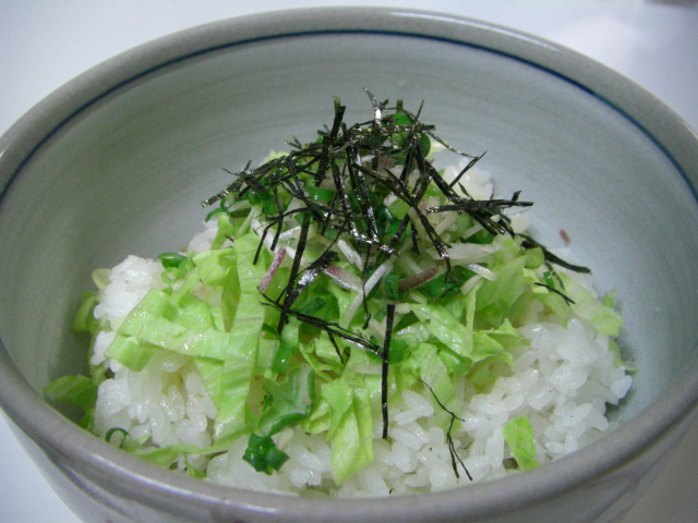 "レタスと茗荷とおじゃこの卵かけご飯"