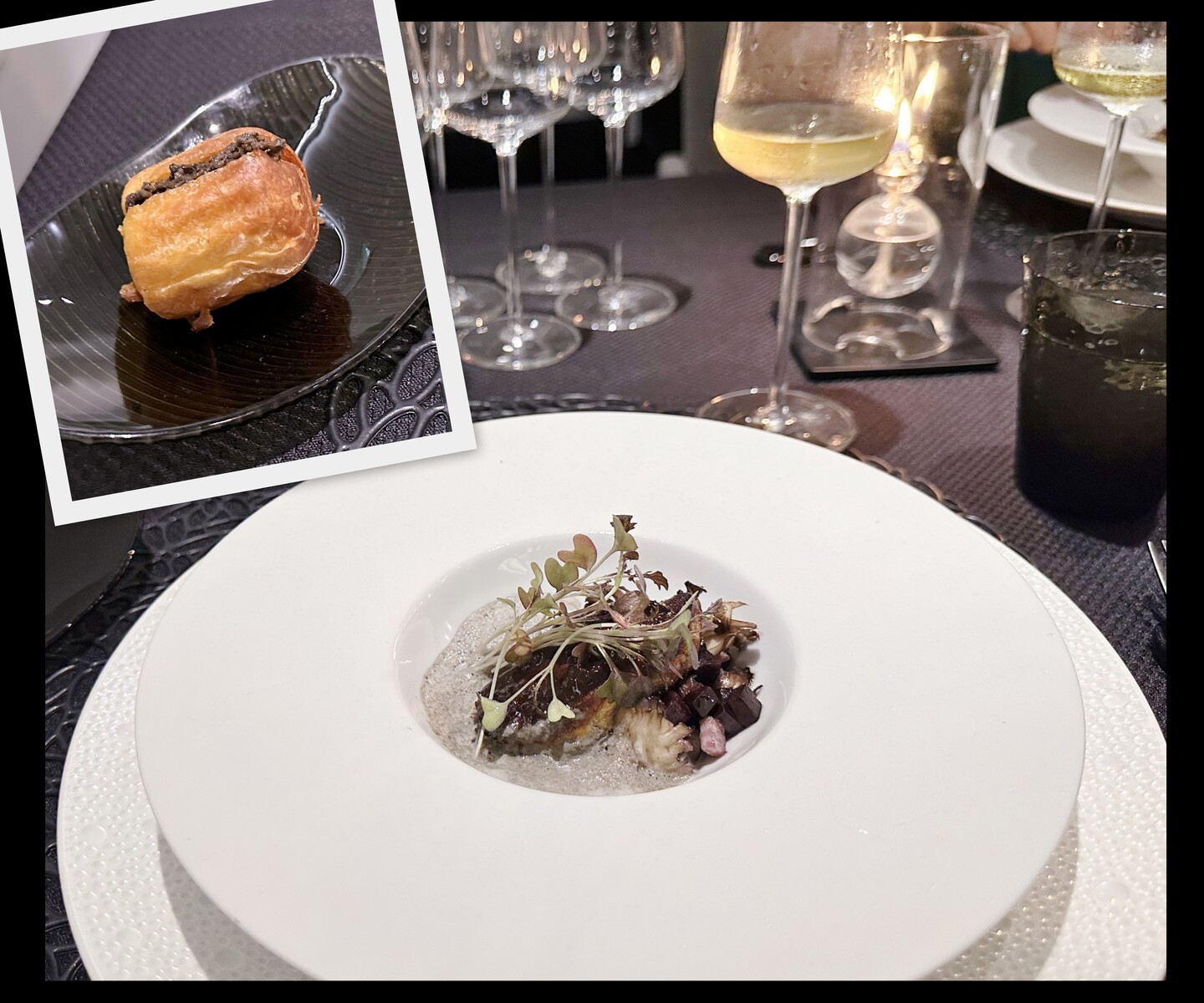 黒舞茸やビーツ、トリュフなど。スプラウトもなんとなく黒系でシック。
