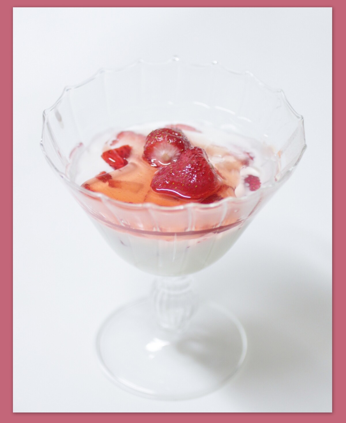 器の中に苺を貼ろうとしたのに、上手く行かず、中に埋もれました(^^;;