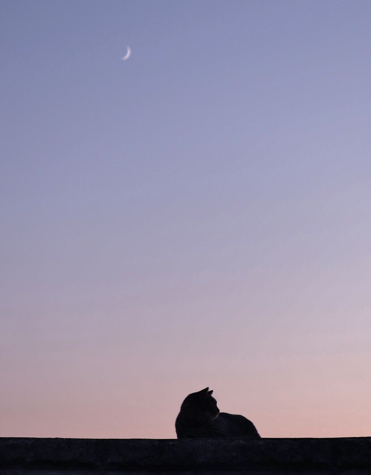 防波堤にいたニャーちゃんの上に出ていた三日月は、