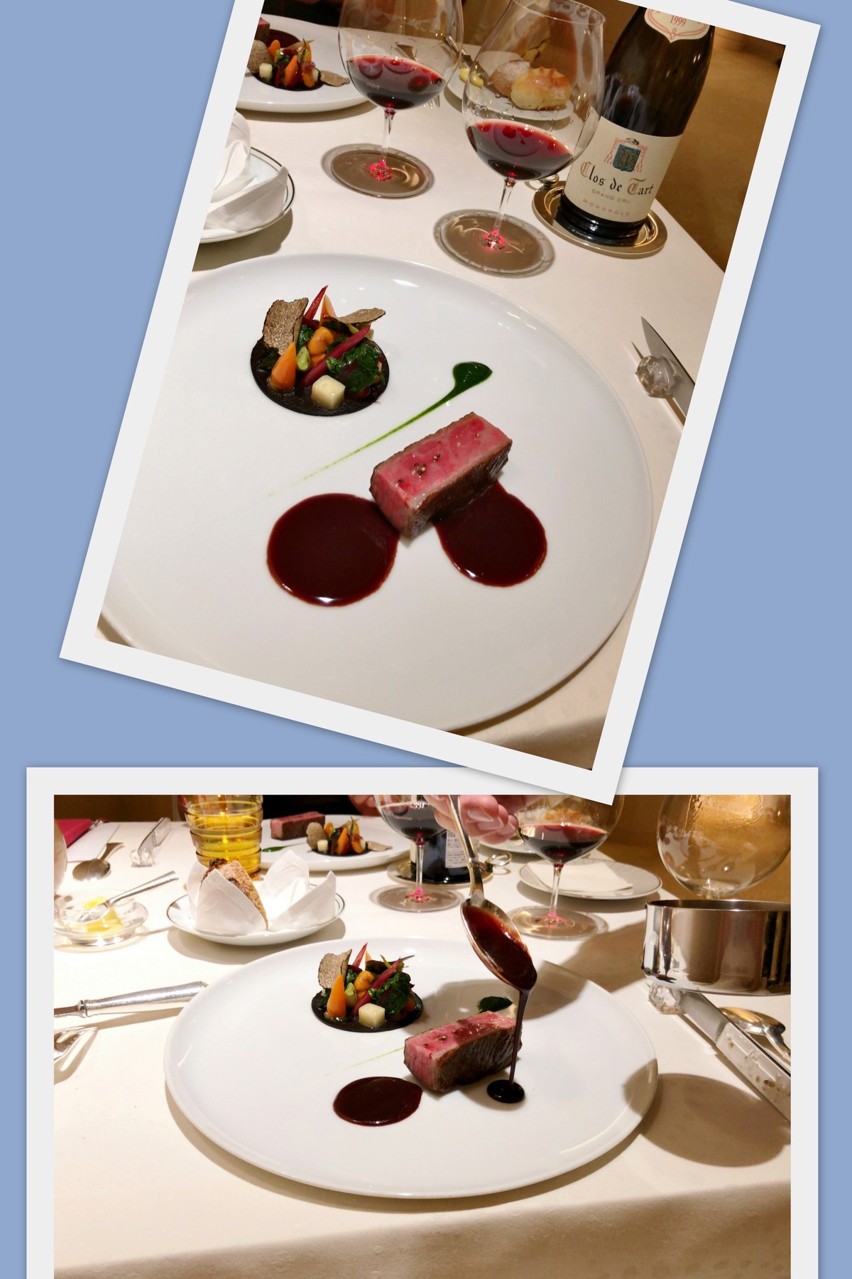 赤いのは、ビーツ。中はトリュフの茶わん蒸しのようなの。美味。