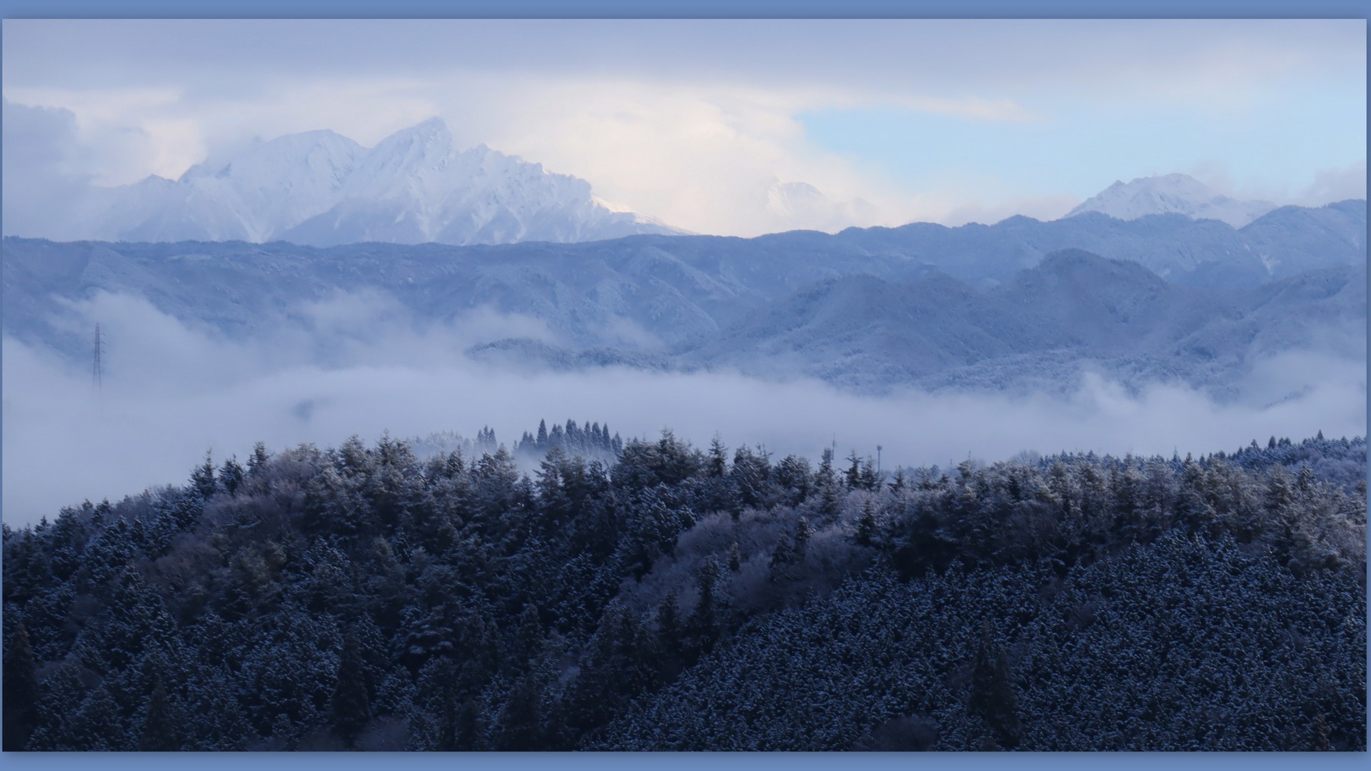 ↓ 翌朝起きたら、近くの山も薄っすら雪景色