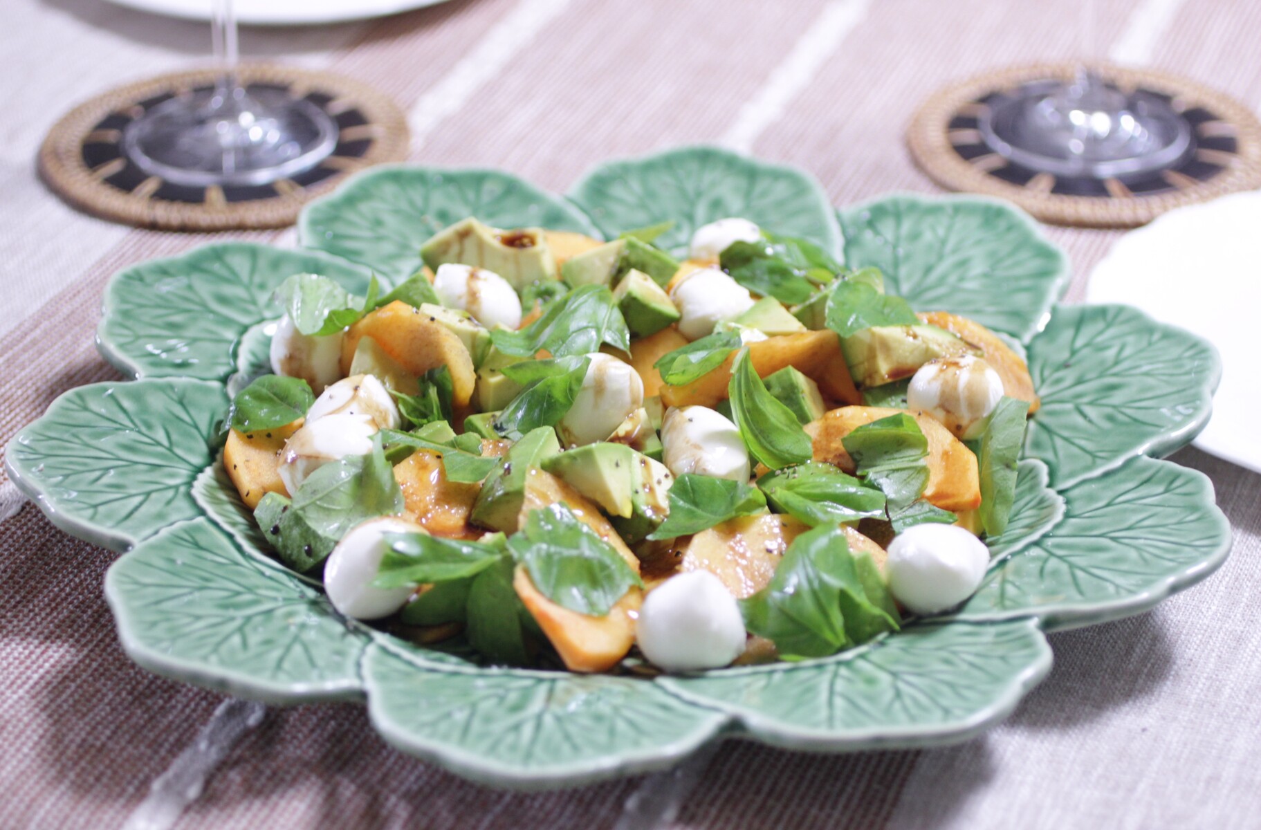 サラダ:彩りの綺麗なお野菜とナッツにざくろのドレッシング(左上)
