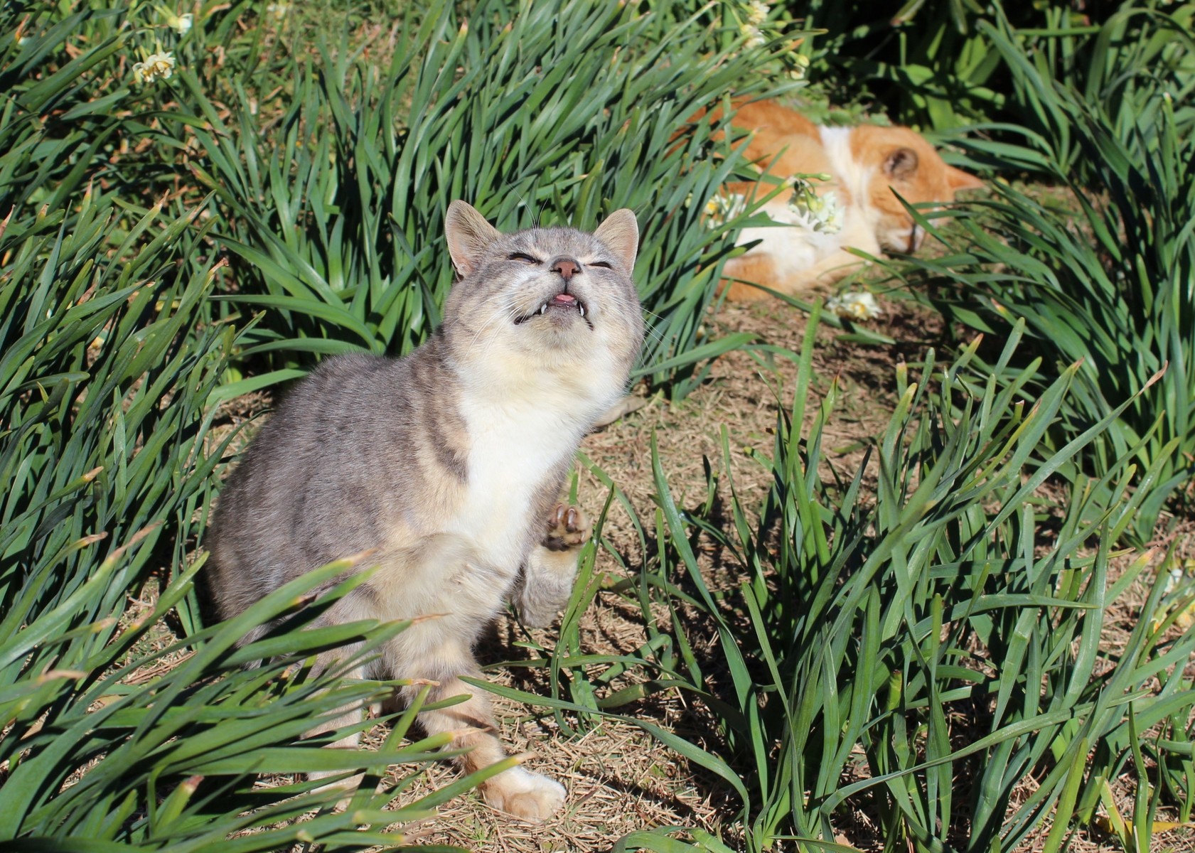 上を向いてカユカユしたら、お日様が眩しいニャ〜