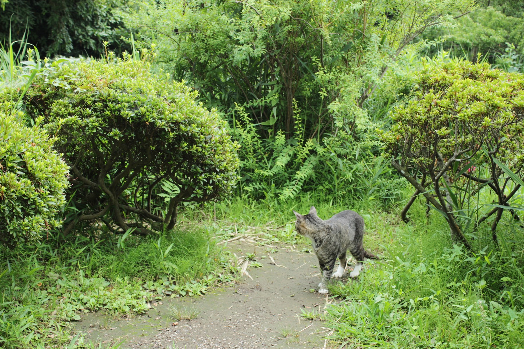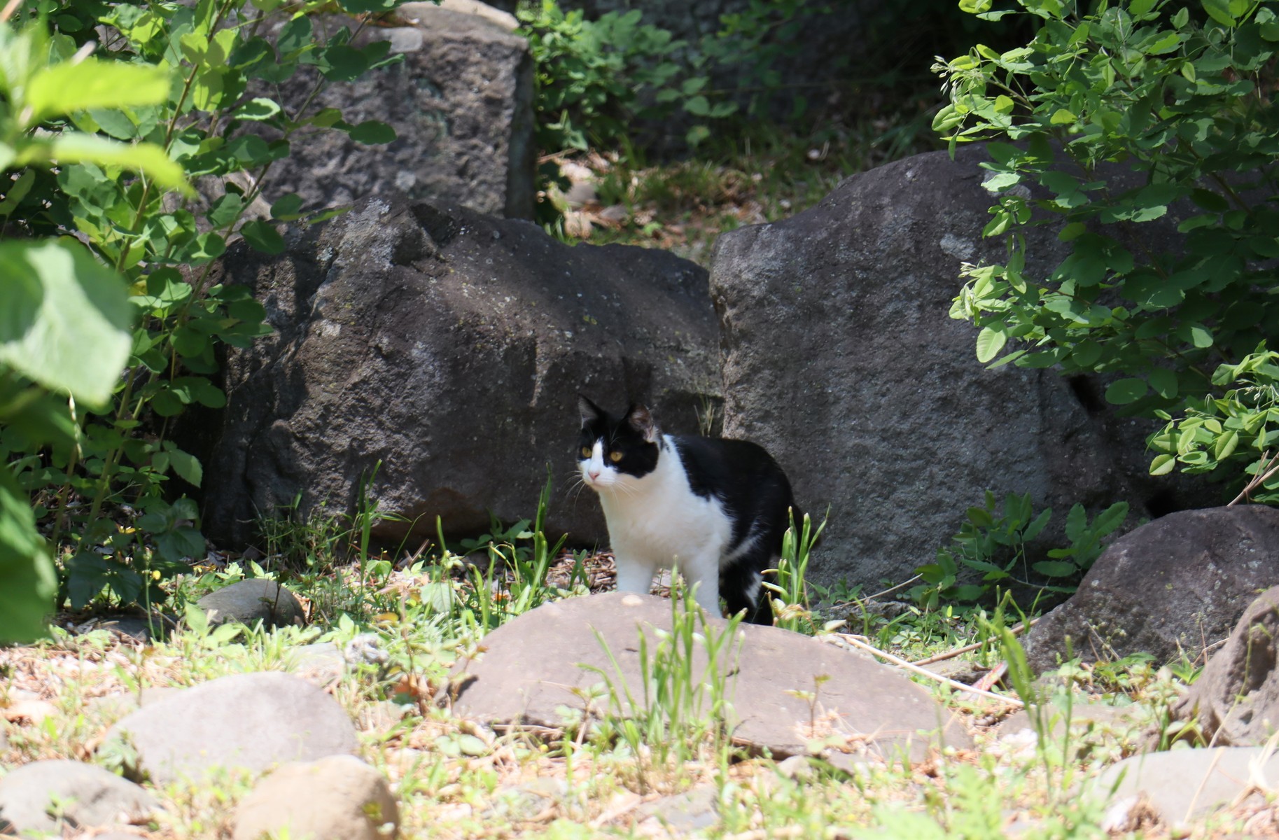 セミナーの後、冷房が効いている会場は寒いくらいだったので、体を温めるためにお庭を散歩していたら、猫ちゃん発見!!(写真右)