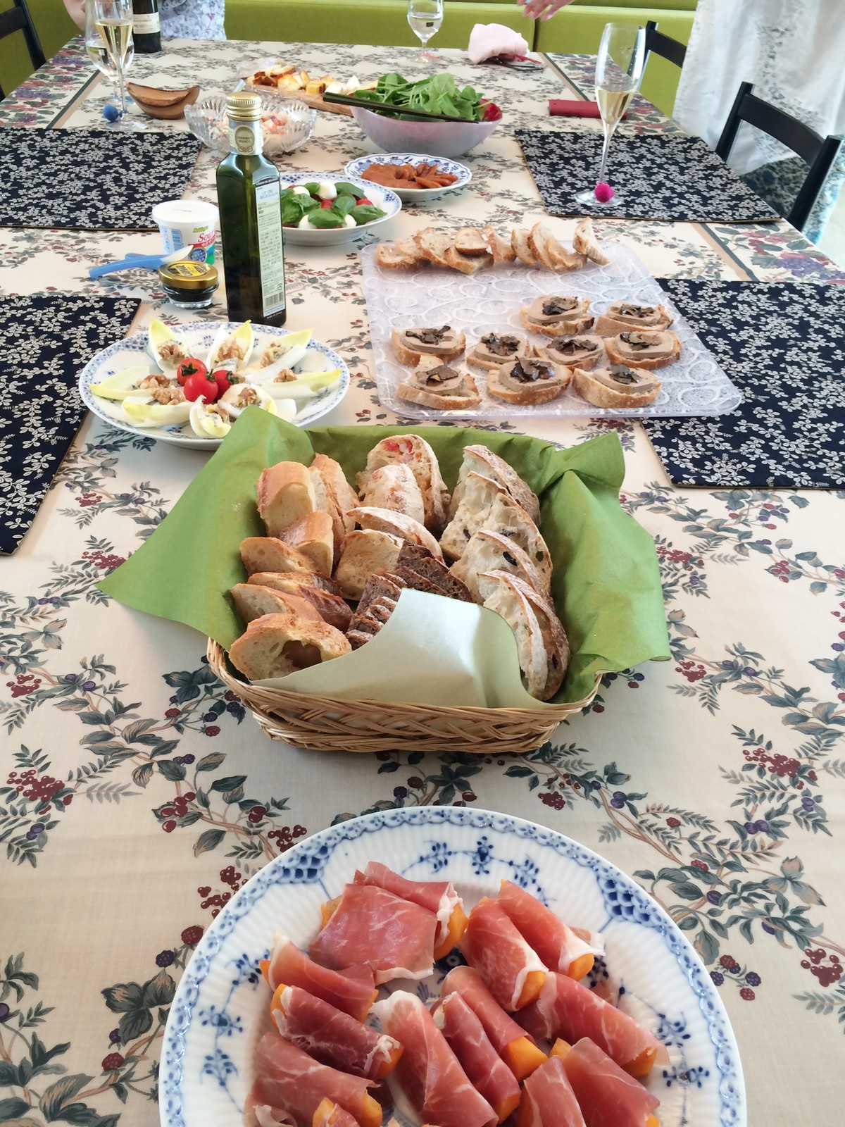 最初は、レストランでのランチの計画でしたが、丁度お盆の頃で、好みの食材が入荷しない様子、それでお家でのランチ会になりました。