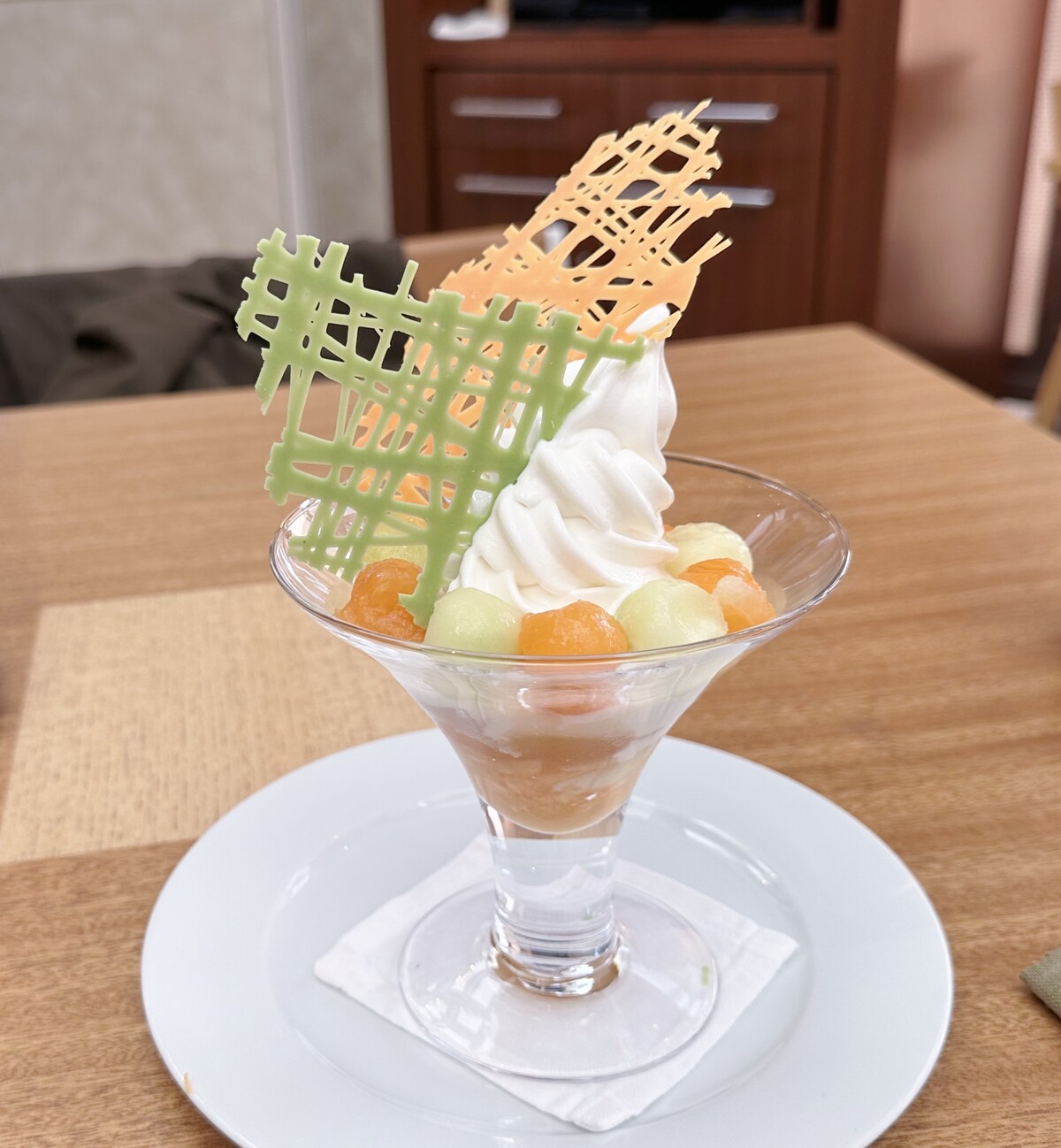 真ん中辺りにココナッツのチュイルがあり、その下にナタデココ。
