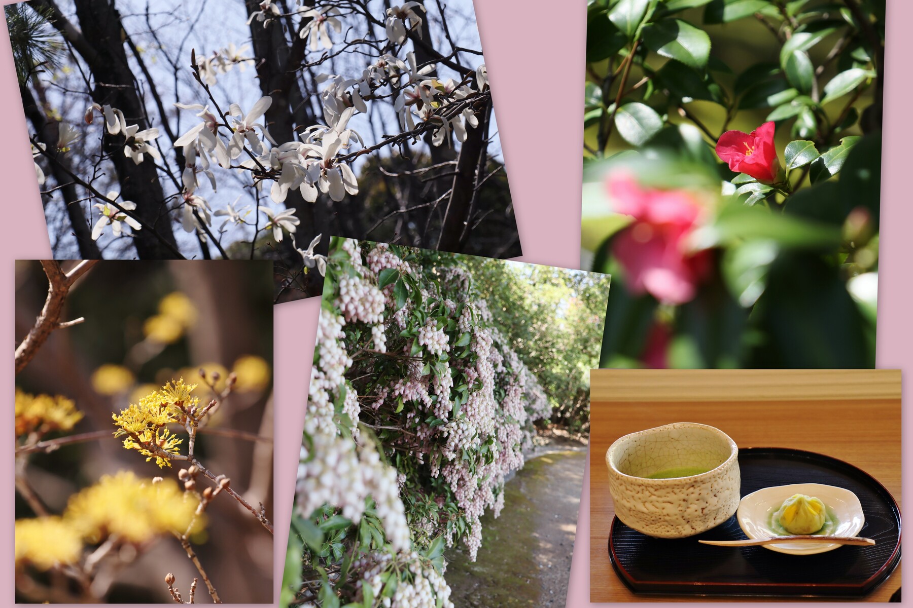 木瓜、早咲きの桜のガク、雪柳、辛夷、土佐水木、躑躅