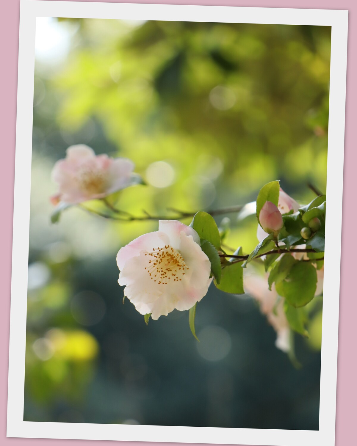 こちらの椿の名前は分かりませんが、優しい淡いピンクが可愛い。