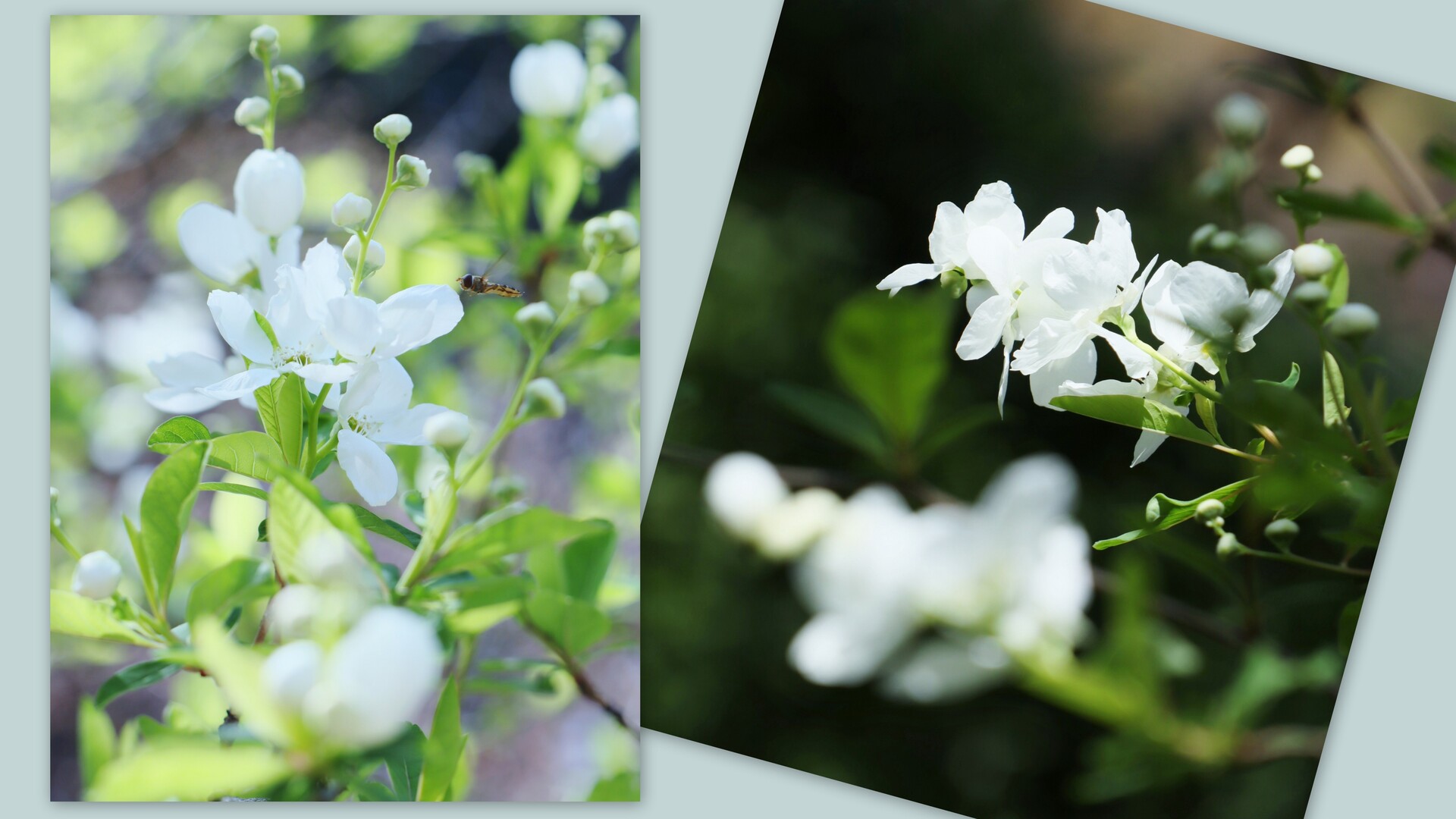 この白いお花は何だろうと、ググってみたら「利休梅」だそうです。