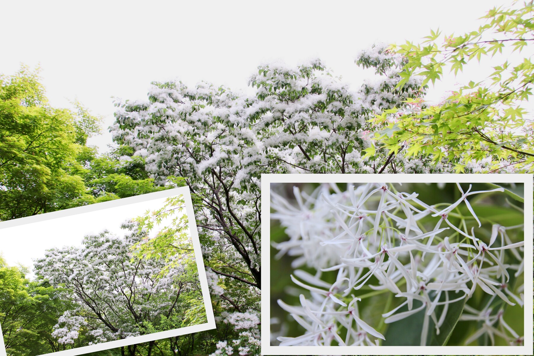 ↓ 春、お花で真っ白に覆われていた "ナンジャモンジャ"(ヒトツバタゴ) の木