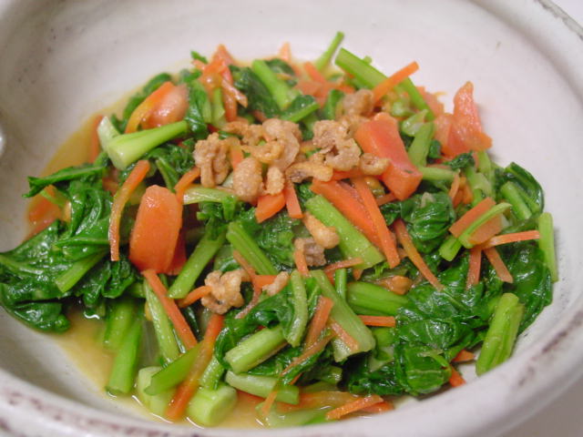 ほうれん草にはカリカリに炒ったおじゃこをかけて。