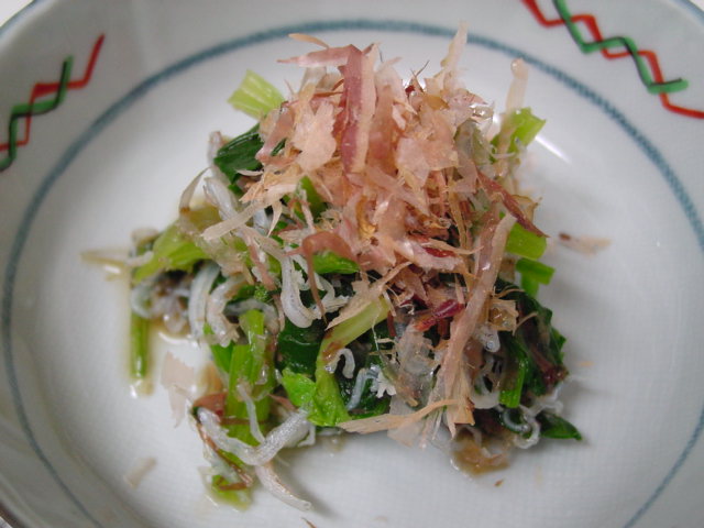 今日はまずチンゲン菜とおじゃこのおひたしから。