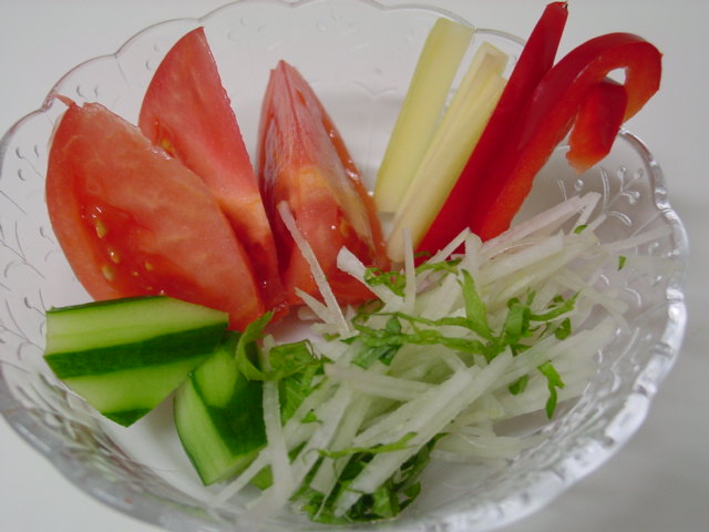 今年は杉の花粉も少な目と聞いているけれど、予防対策として、紫蘇が良いと聞いてから、毎日少しでも食べようと、今夜はおくらとサラダに混ぜました。