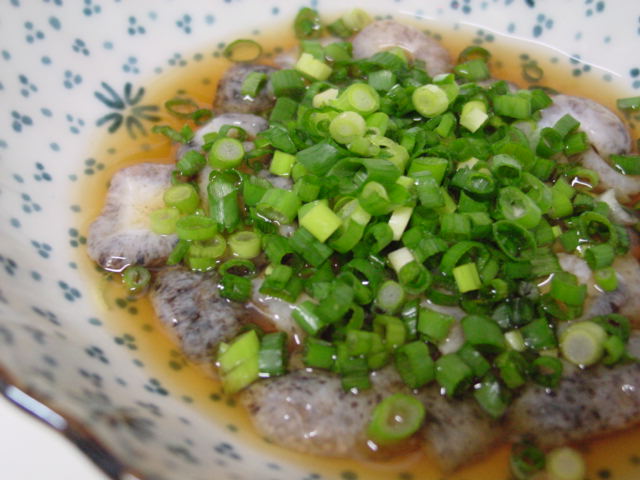 なまこは柚子醤油に浸けて、小葱をわんさか入れます。