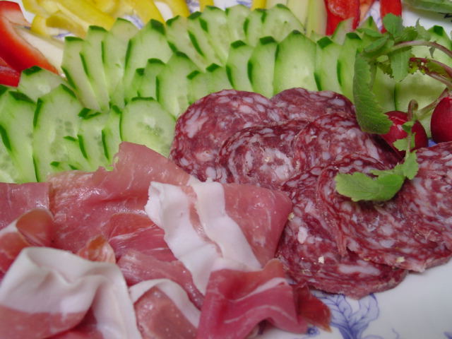 妹がイタリアで買ってきてくれた、いのししのサラミとプロシュート。 きゅうりが1本しかなかったので、セロリいっぱい、そしてラデッシュも添えました。