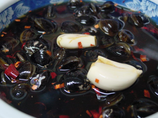 しじみは生を使うので、食べる時に貝を開けるのが大変だったのですが、ある時その問題が解決しました。平野レミさんのお料理の本に、しじみの冬眠というレシピが載っていて、彼女も私と同じ悩みを持っていたらしく、さんざん試した挙句、しじみを冷凍するという方法に辿り着いたのだそうです。それを読んで私も早速やってみました。以来、私もこのお料理を"しじみの冬眠"と呼んでいます。ただ私の場合、冷凍庫から出して暫く置いた後、しじみの殻が開くのをやさしくこじ開けて手伝ってあげます(笑)