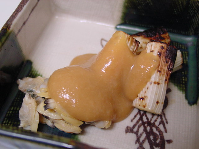 先日作ったあさりの剥き身と焼いたお葱にぬたをかけて。