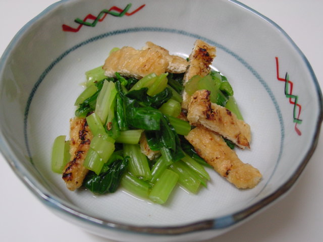 信じられないとは思いますが(少々大袈裟?)、我が家のウィーク・デイの朝食はお正月以来お雑煮でした。でも、お餅の買い置きがなくなって今週はお粥です。・・・どういう風に話が繋がるかと言うと、今日作ったこの "小松菜とお揚げのお浸し" の小松菜はお雑煮用に買ったものを使ったというだけの事です(笑)