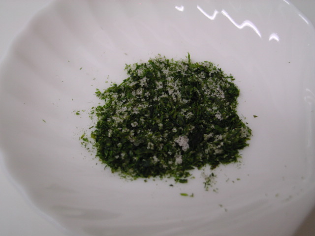 付け汁に入れる大根のストックが無くなったので、今夜はお出汁につけるのではなく、青海苔と藻塩を混ぜたものをパラパラとかけていただきました。藻塩は旨味があってお塩味がやさしいのでこんな風に使うと本領発揮という感じです。