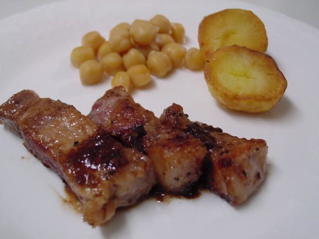 ガーニッシュには、じゃがいものローストと美味しかったのでまた煮てしまったひよこ豆。