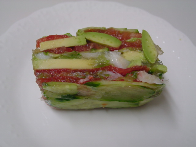 そこで、作ったのがこの"蟹とアボカドとトマトのテリーヌ"(もどき)です。