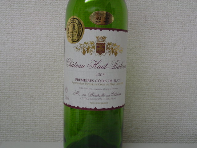 ワインは、フランス、ボルドーのプルミエール・コート・ド・ブライ 2003。もう1本、ボルドー、そして、イタリア、トスカーナでビオのメルロー。