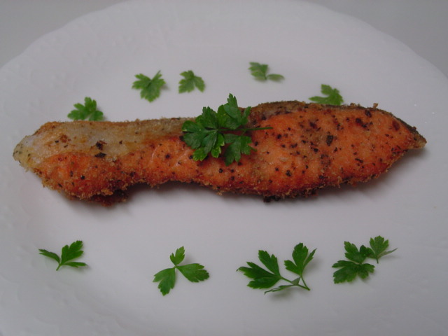 サーモンとパン粉のつなぎを牛乳だけにしたので、パン粉が綺麗につかなかったのと、油を入れすぎたので、普通の揚げ物の様になってしまいました(泣)