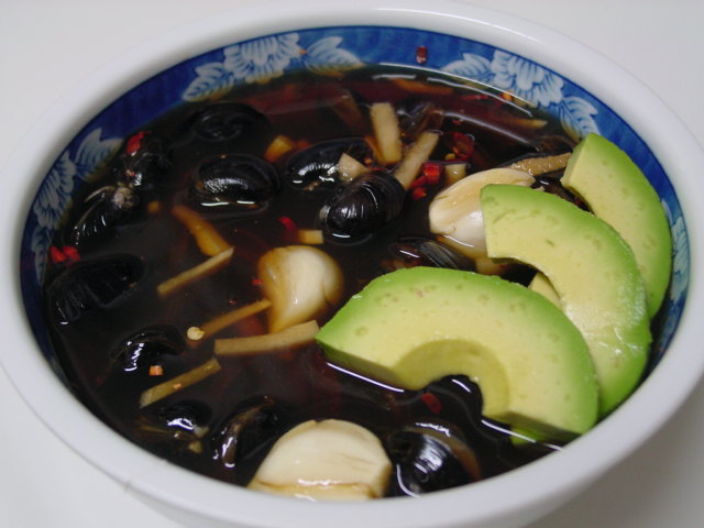"出世しじみ"という名の愛知県産のしじみで作った、しじみの冬眠。いっぱい食べればうんと出世できるのかな? 今日はアボカドを添えました。