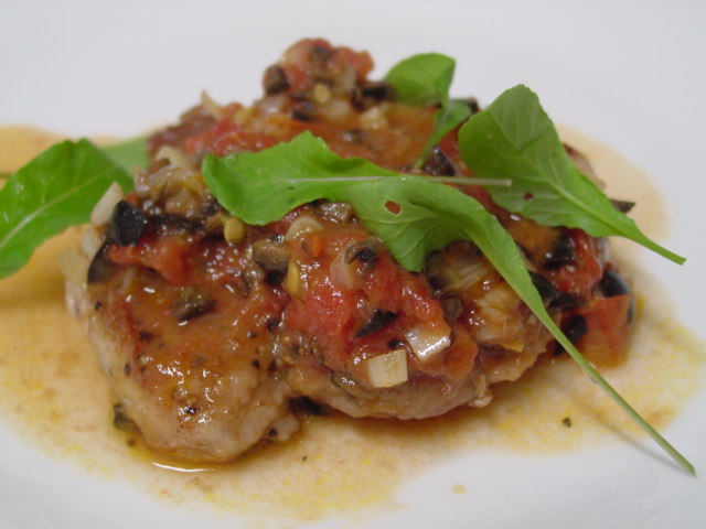 豚ロースのソテーにはアンチョビとオリーヴのソースをかけました。