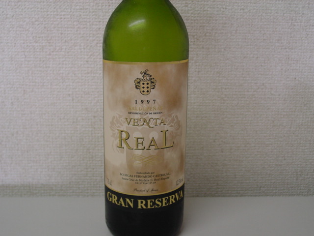 ワインはスペイン、ボデガのレアル・グラン・レゼルヴァ 1997。私はテンプラニーリョが結構好きなのもあって、ここ最近お気に入りで他のワインと一緒にいつも1本買っています。めずらしく1/4ほど残りました。