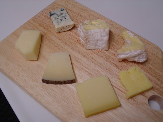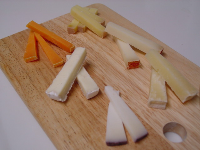 上の左から、デンマークのクリーミィなブルー、ダナ・ブルー、フランスの優しいウォッシュ、ポンレベック、個性的な白かびのカマンベール・ド・ノルマンディ・・・暫く置いておくととろっとしてきて"食べて食べて"といい始めます(笑)