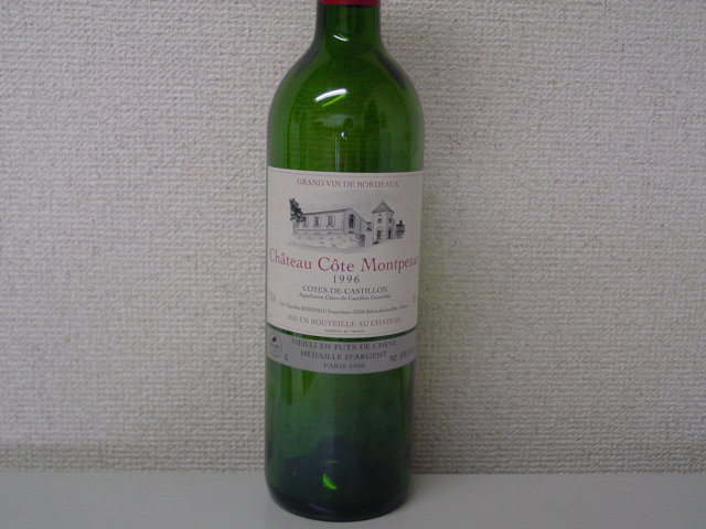ワインは、ボルドー、コート・ド・カスティヨン 1996。