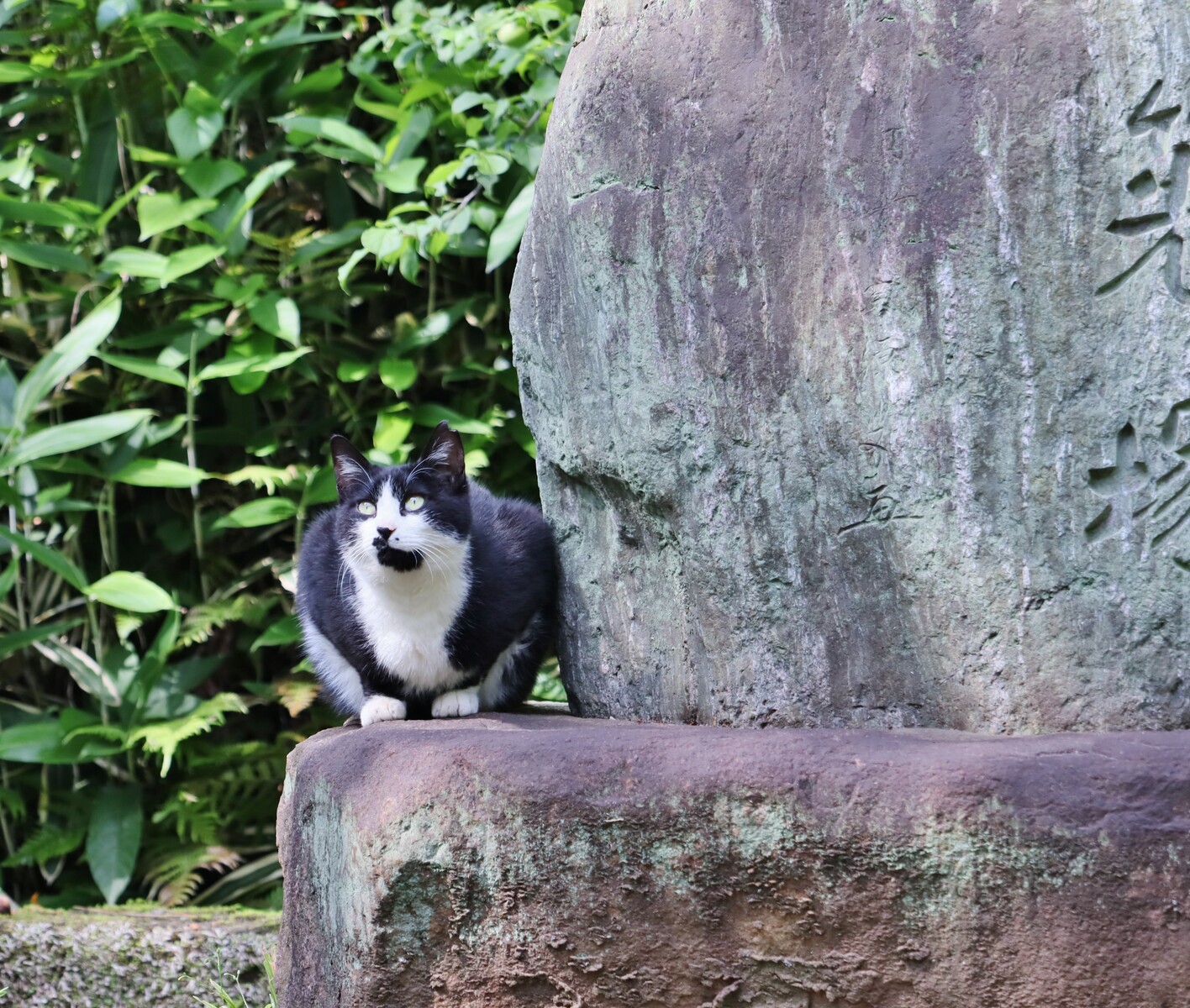 紫陽花の根元でかくれんぼしてるニャーちゃん、み〜っけ!