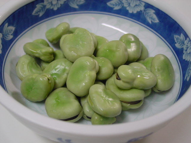 そら豆の塩茹で。時期外れのそら豆には味わいが余りありません・・・当然ですネ。