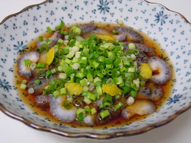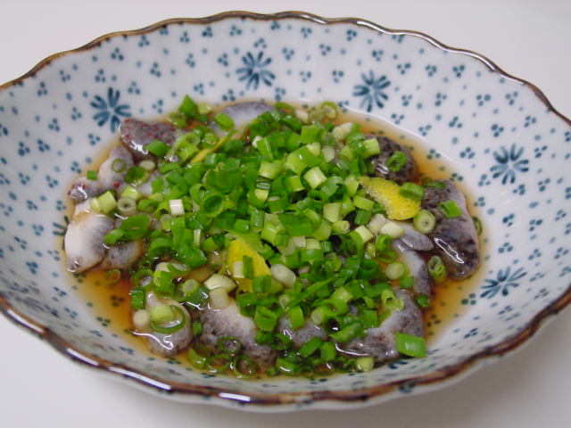なまこの柚子醤油。実家に実った柚子の皮も入れてみました。