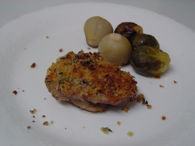 メインの鶏のモモ肉は紅茶で瞬間燻製した後、パン粉をかけてオーヴンで焼きました。→ 瞬間燻製の仕方