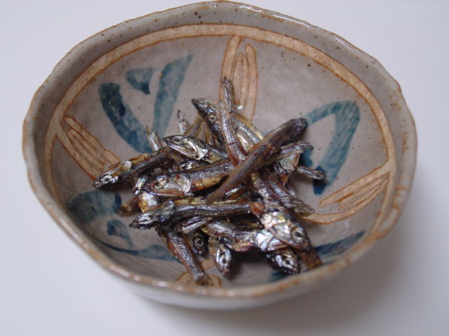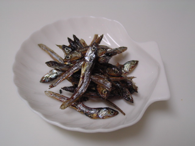 そして、母が作った田作り。いつもはフライパンで長時間煎ってから調味料と水飴などを入れて作るそうですが、今年は新聞に載っていたとかでレンジにかけて、調味料で味付けしただけの少しサラサラした田作りです。