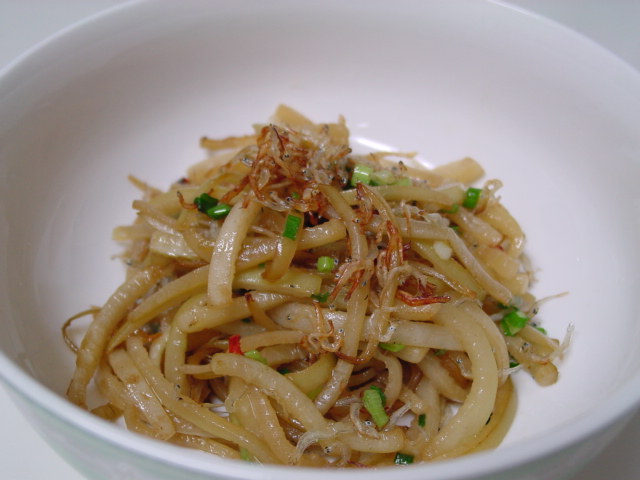 大根の皮は大根を使う度に集めておいてきんぴらにします。今夜はおじゃこと小葱も入れてみました。これはこれで美味しい一品になりました。