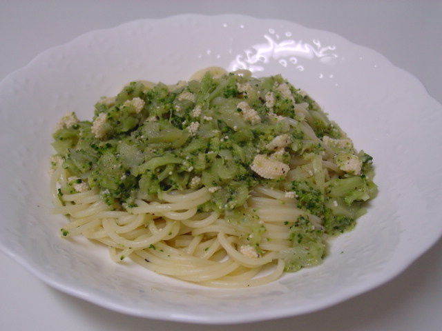 パスタにはお正月らしく、数の子を使ってみました。軽く塩出しした数の子とブロッコリをオリーヴ・オイルで炒め、白ワインでフランベ。